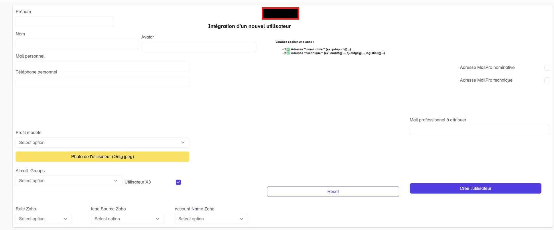 - intégrations applicatives optionnelles : téléphonie, annuaires externes, CRM, ERP, applications métiers---"Point d’entrée : formulaire métier unifié (RH / DSI)"L’onboarding est déclenché depuis un formulaire métier centralisé, utilisable aussi bien par les équipes RH que par la DSI.Ce formulaire est conçu pour :
