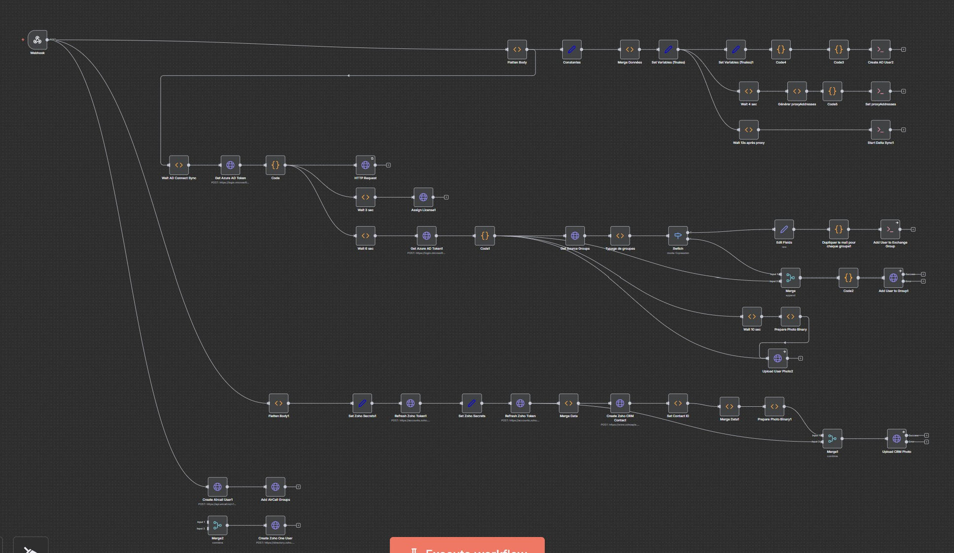 - validation explicite par l’utilisateur avant application---"Comment ça fonctionne (logique d’exécution)"L’ensemble du processus est piloté par un orchestrateur d’automatisation, chargé de coordonner chaque étape de manière séquencée et sécurisée."1. Déclenchement & normalisation"- réception des données issues du formulaire (identité, email, profil, photo, options)
